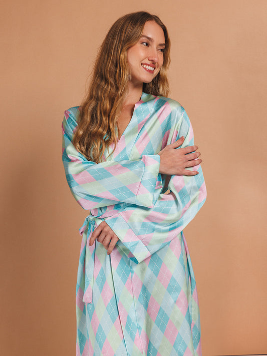 Long Robe Cole, Printed Shawl, Plain, Rose, Grey